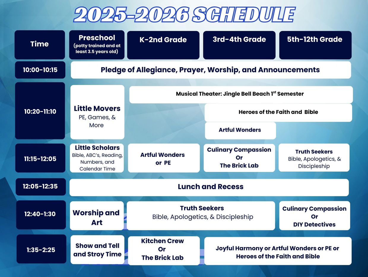Students learn acting, singing, and dancing while exploring biblical themes through performances. Join us for an uplifting experience that celebrates both the arts and faith!